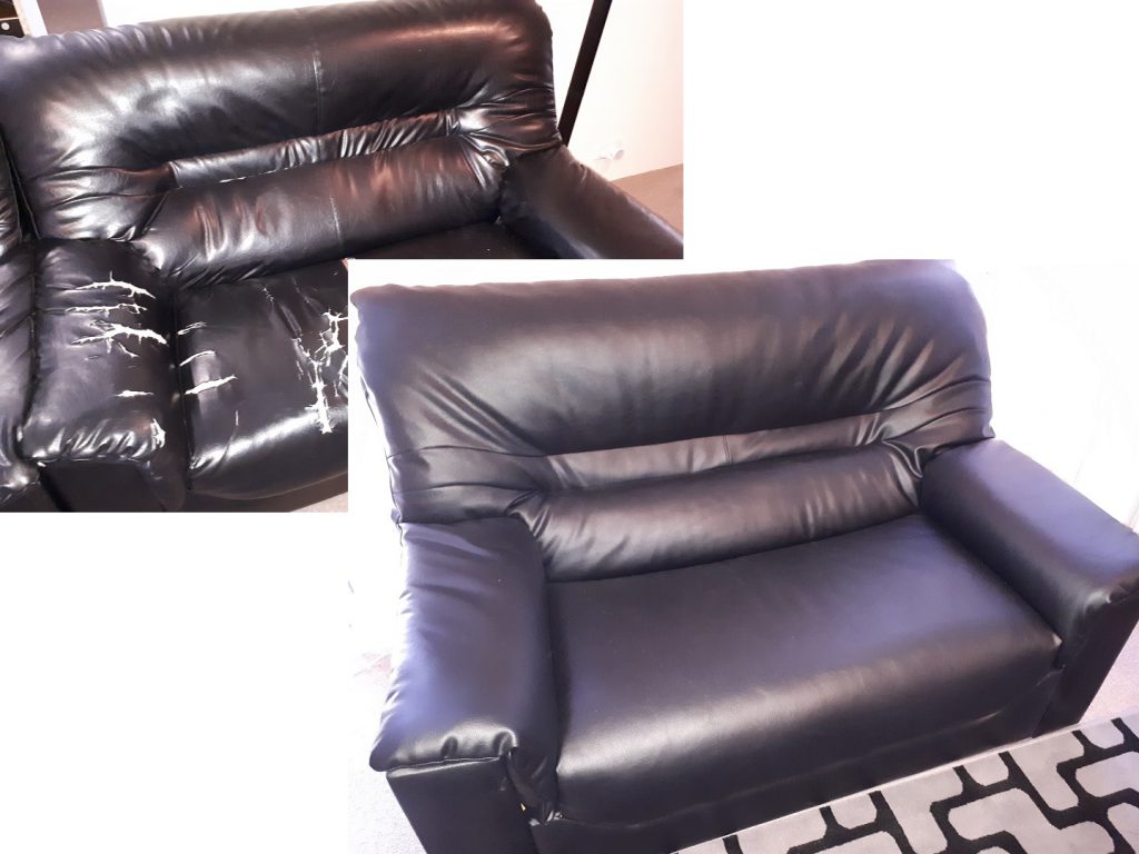 This old sofa’ s vinyl was torn to shreds, but came up like new with new upholstery…